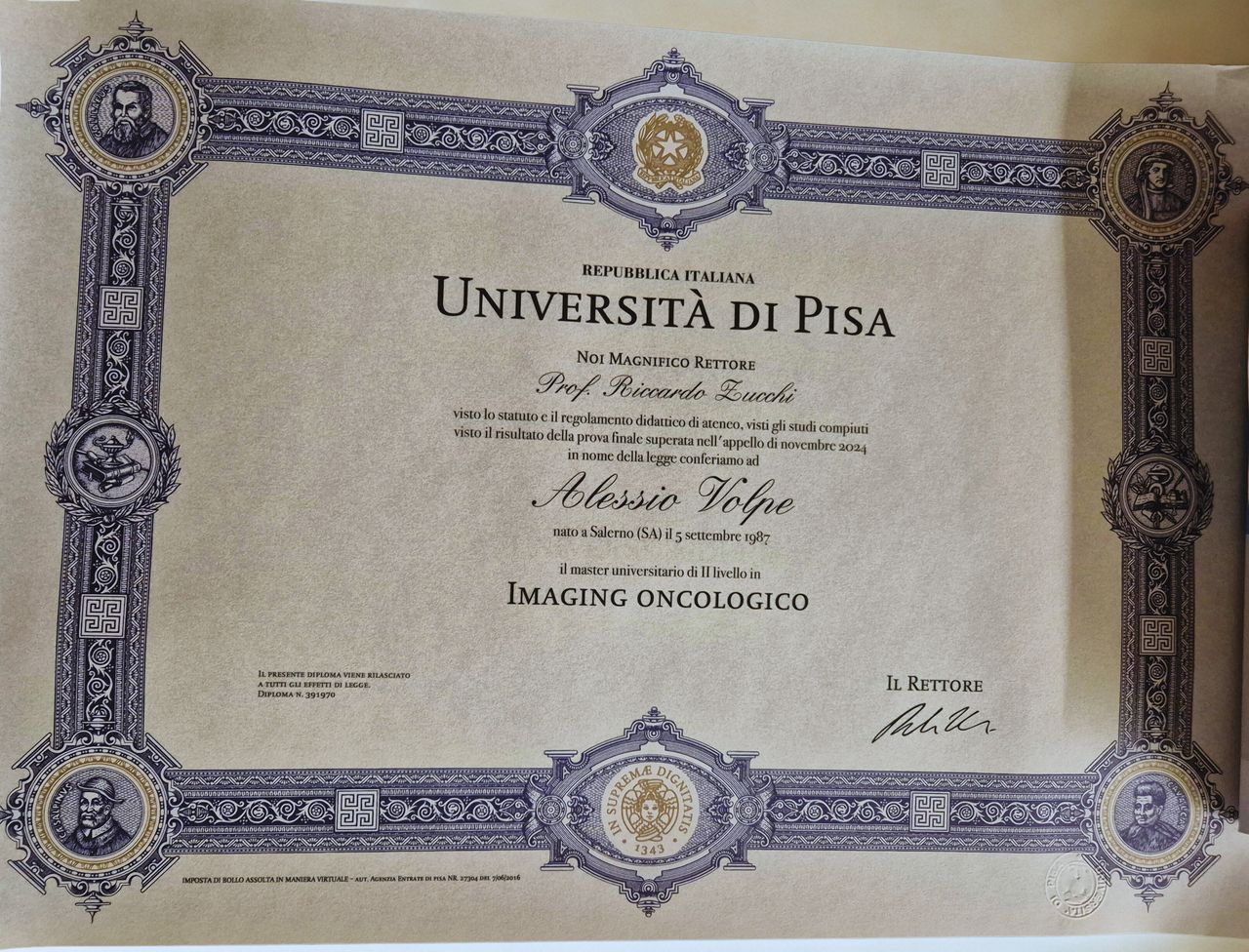 Sono membro del Collegio Italiano dei Senologi e svolgo attività nello screening mammografico dell’ASL Salerno. Sono specialista in radiodiagnostica. Ho conseguito un master di secondo livello in imaging oncologico e ho approfondito la gestione delle strutture sanitarie attraverso un master in direzione e management delle aziende sanitarie. Sto completando un master in medicina legale assicurativa e, dal 2026, frequenterò il master in Senologia Oncologica presso l’Università “La Sapienza” di Roma per perfezionare ulteriormente la mia competenza nella salute del seno.
